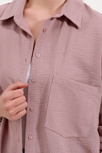 20153 Tek Cepli Oversize Keten Gömlek Gül Kurusu