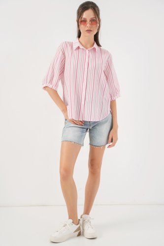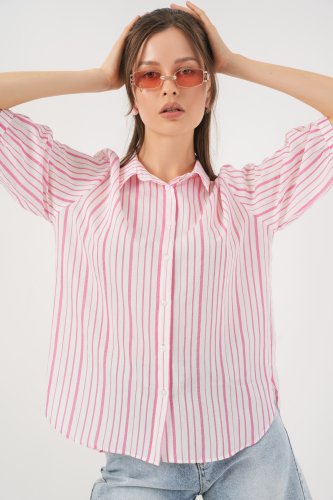 • Çizgili Kısa Kol Gömlek 20345 Pudra