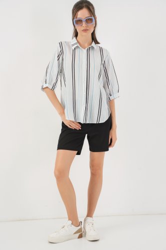 • Çizgili Kısa Kol Gömlek 20345 Açık Mavi