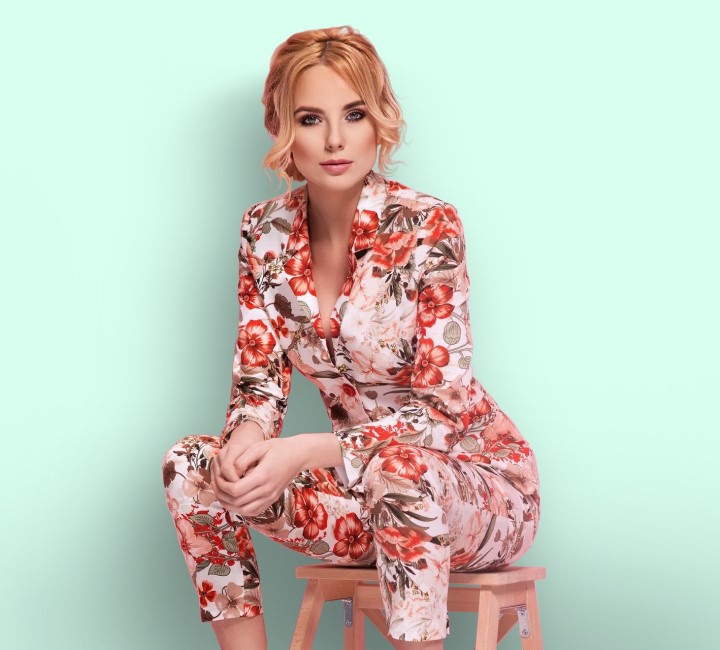Kadın sıfır kollu çapraz v yakalı önden düğmeli atlas yelek ve pantolon ikili takım